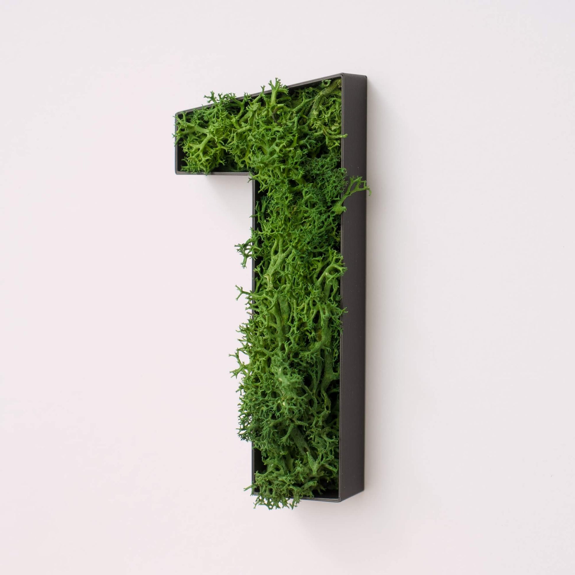 Die “1” steht für Anfang, Fokus und Zielstrebigkeit. Als Mooszahl bringt sie Ordnung und Bedeutung in deinen Raum. Ideal für Etagen, Räume oder Tischnummern mit Stil.