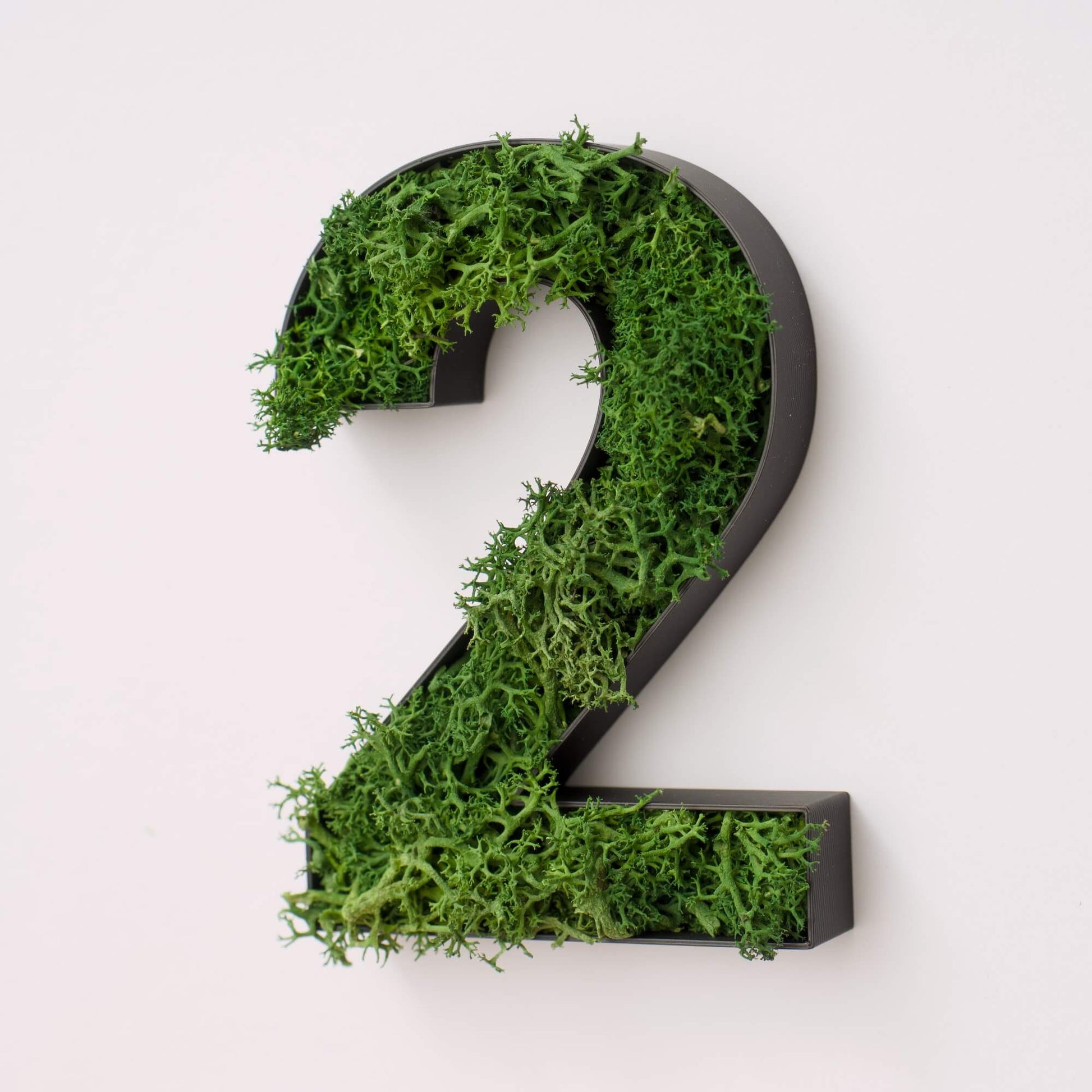 Die “2” steht für Verbindung, Gleichgewicht und Kooperation. Als Mooszahl bringt sie Struktur und sanfte Dynamik in deine Wandgestaltung.